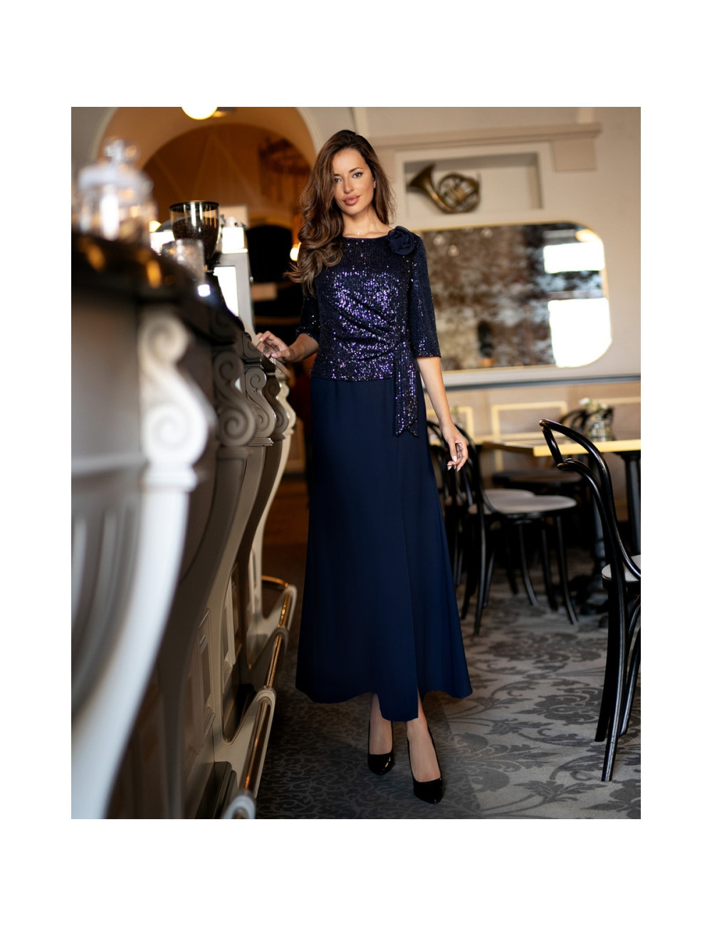 Tilda Granatowa Długa Sukienka Wieczorowa